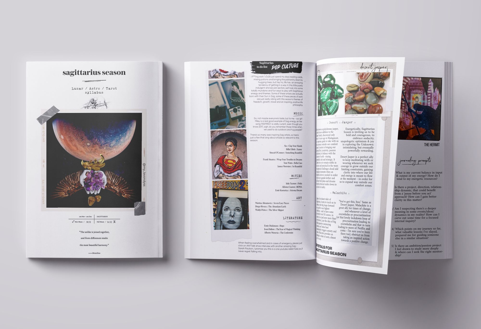My guide book is filled with original artwork, mantras and affirmations, tips and tarotscopes to support you on your journey through Sagittarius Season and towards your highest evolution: