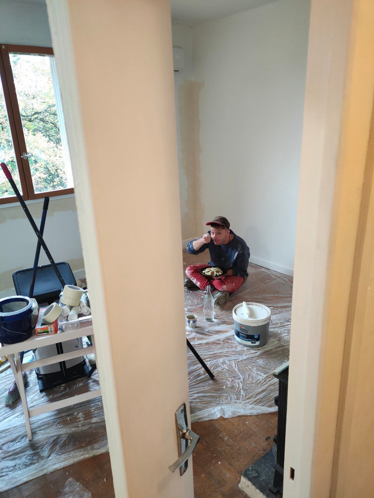 This place is available to rent via AirBnB, but for our working stay here, this will be our private palace. Sophie filled our fridge and regularly tops up our boxed wine supplies and prepares delicious lunches & dinners, and in exchange we’re offering our muscle strength, energy & determination to their new project - sprucing up a flat in a charming medieval looking village of Masseret (15 minutes drive from here), that will eventually also be rented as AirBnB. The previous owner committed some serious interior decoration crimes, so our first few days were filled with obliterating super ugly seventies wall paints (deep blue in the bathroom, deep purple in the living room, green in the bedroom and black in the kitchen!), furniture covered in grease with dog hair glued to it, building a scaffolding (our first! Awww!) to clean the gutters, and generally just breathing some new life into a place that others would just set on fire and walk away from.