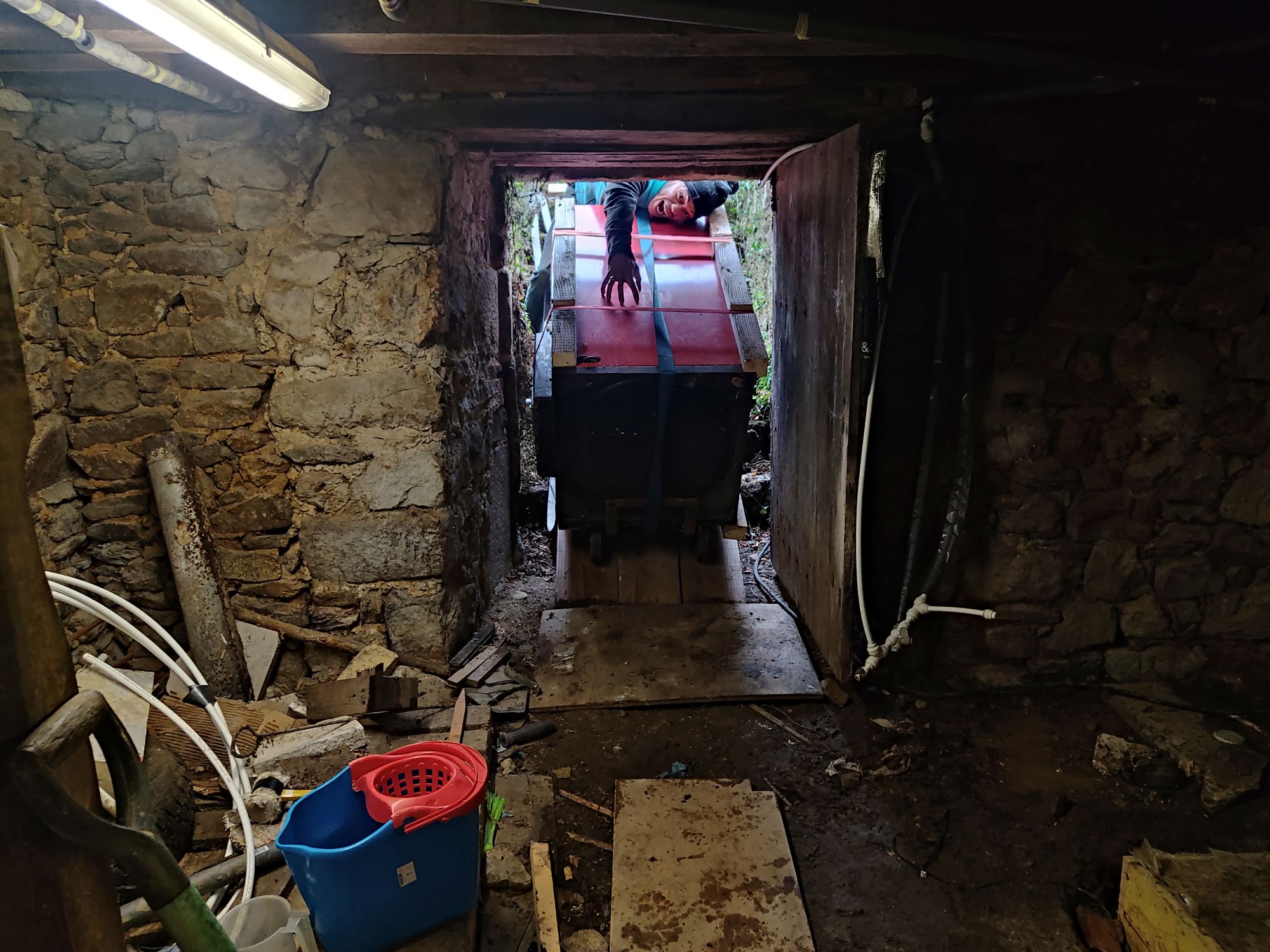 During these few weeks here in Correze we got the chance to try out a wide range of professions, from totally impromptu chimney cleaning - directed by David, of course due to my fear of heights - for which we used a mobile phone camera tied to a string and lowered down through the chimney, to moving a three-ton boiler to the basement - a task that took two afternoons and three tons of nerves. I don't know if it's the exhausting nature of our daily tasks, or the intrusive autumn dampness and cold, or just the fact that Sophie immediately accepted us as part of the family and after all our crazy travels and adventures we slow down, savour and enjoy this daily rhythm, or maybe it's the steady stream of boxed red wine, but I can't remember when we've slept better than in our mobile home.