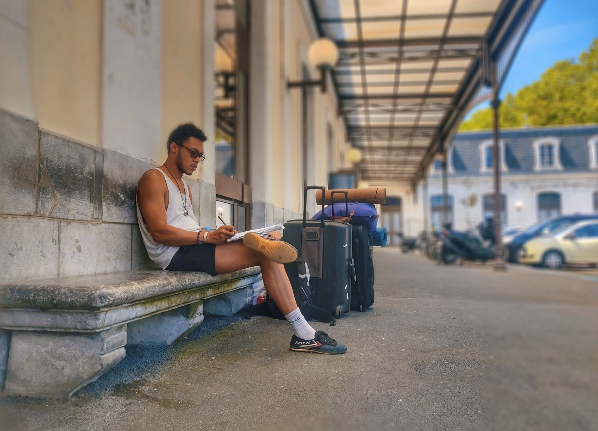 As a bridge between two stable points - Workaway at the castle and a five weeks visit to my parents in Czech, we’ve planned for a week of pinballing between friends in all corners of France. First few hours of dragging all our belongings packed in two unwieldy luggages & about dozen various misshapen Lidl carrier bags tied to each other up and down the stairs, from a platform to a platform, from a bus station to the train station, I have a newfound appreciation for poor snails and hermit crabs. When we finally make it on the train, stash our luggages safely by the door, the last thing on my mind is going through them and digging up a journal or a book. Instead we collapse in our seats and spend the ride gathering strength for when we need to move them again.