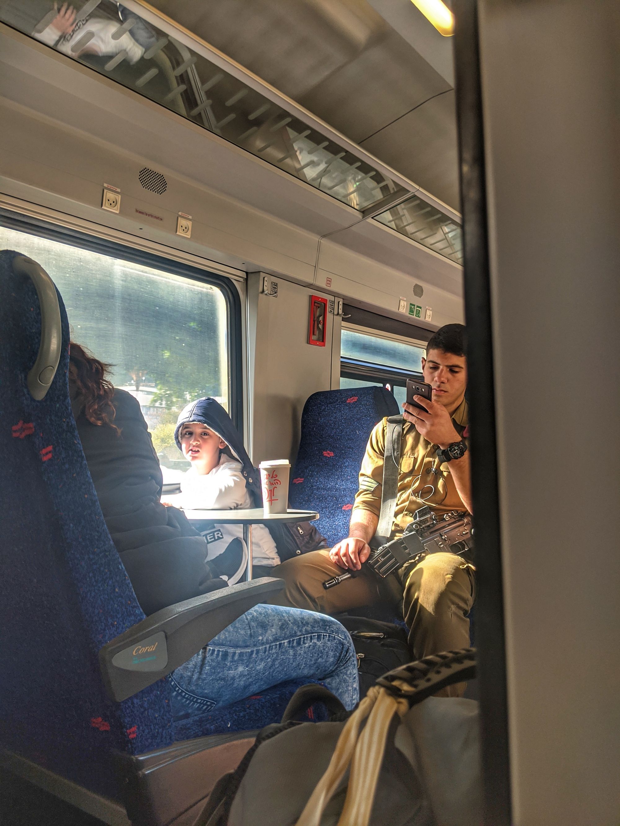 Our train is chock full of military youth resting their machine guns (!) on their laps whilst scrolling on instagram which nobody finds bizarre & I’m secretly dreading my undercover attempts to snap a picture of this phenomenon might be the last thing I do on this planet. This, of course, will be the defining feeling of this whole two-days visit to Israel. Last night we received letters in our cabins detailing how to conduct ourselves when we leave the ship - how to dress (ugly), what to say (nothing) & how a public display of affection between couples is strongly NOT recommended should you wish to come back on board still breathing.