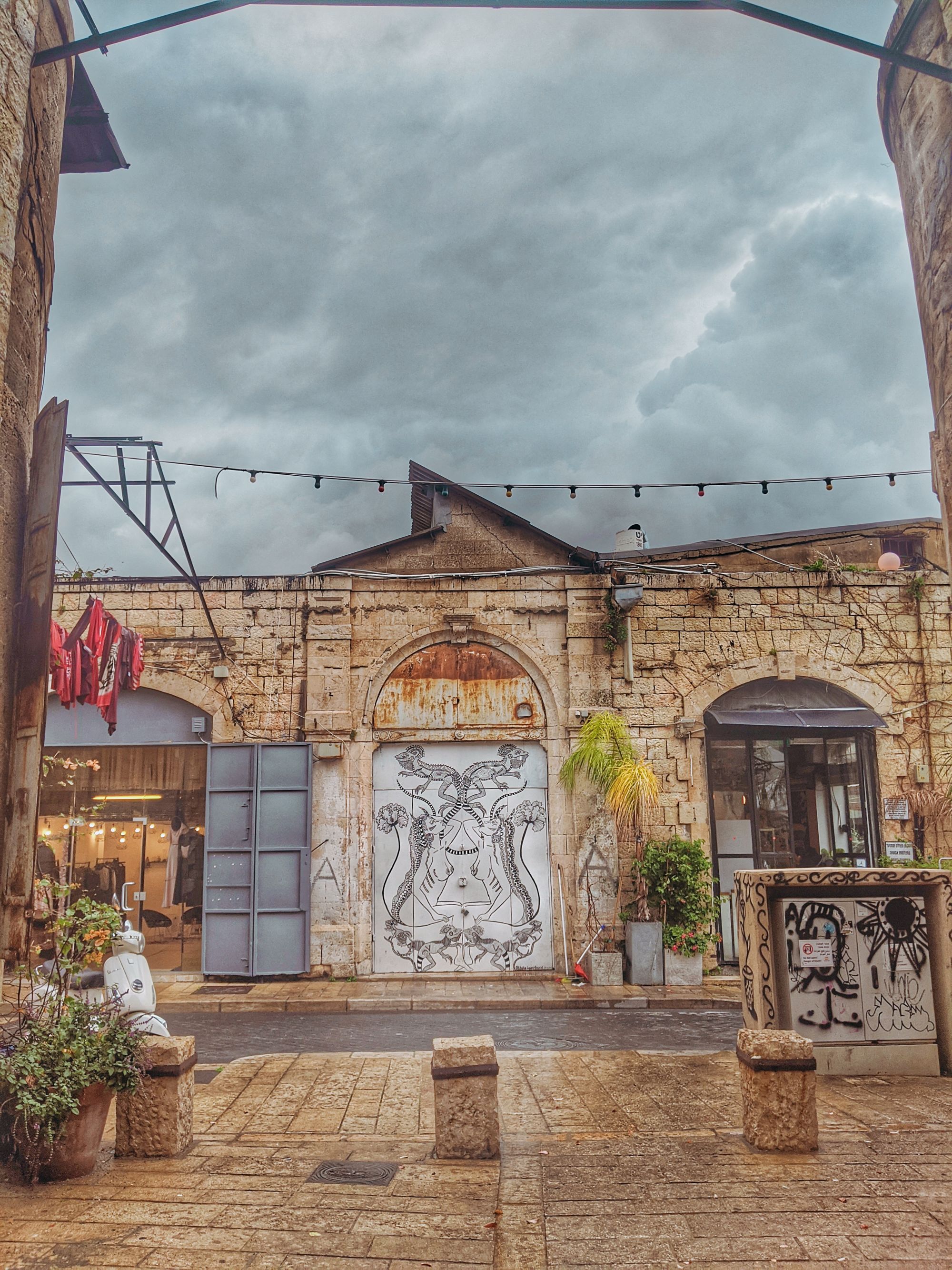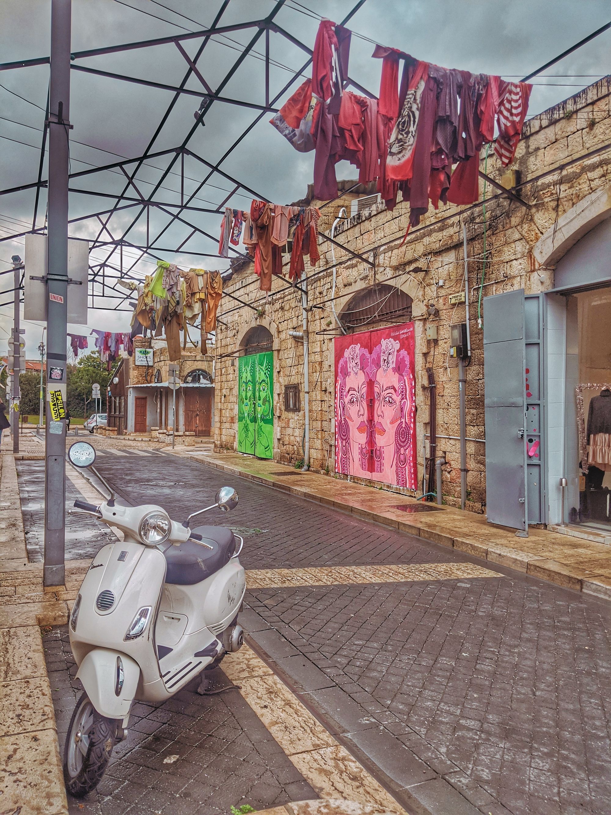 Tel Aviv, like the rest of what we’ve seen of Israel, looks like a post-apocalyptic world that’s only slowly rebuilding civilisation on scraps of the old world. It will remain wedged in my memory like a drizzly grizzly place of stark contrasts. Old town is quite lovely, modern parts are quite ugly, teenagers walk around in full military gear and bizarrely this would be the first place on our voyage where we find both weed AND the limited edition of white Twix, that I’m on a hunt for ever since we left UK.