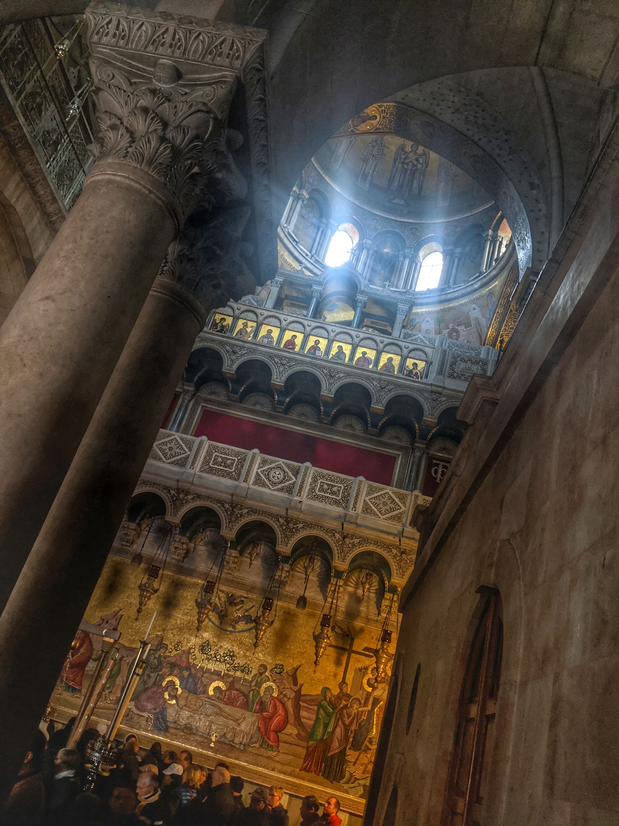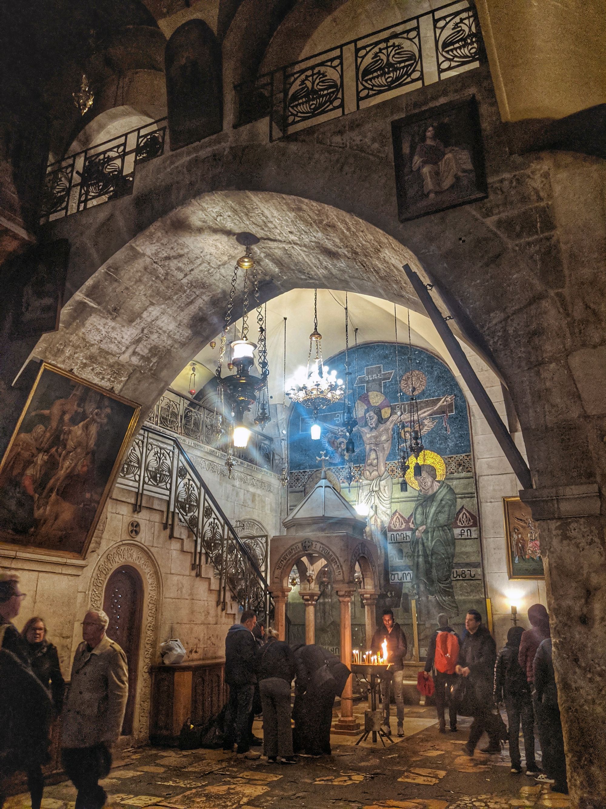 Church of The Holy Sepulchre is built on what’s referred to in the Bible as Golgotha, where Christ was crucified. I haven’t noticed anything that would indicate this was once a hill and the fact that the church is shielding all the legendary ‘stations’ - starting from the pile of stone slabs amongst which the famous cross was raised, to a stone on which Christ’s body was embalmed just a staircase away, and a few steps after that - the tomb in which his body was laid to rest and where he’s risen from dead to walk Earth once more, somehow seemed totally improbable and underwhelming (not helped by the fact you need to queue for at least three and a half hours to take a peek inside the tomb).