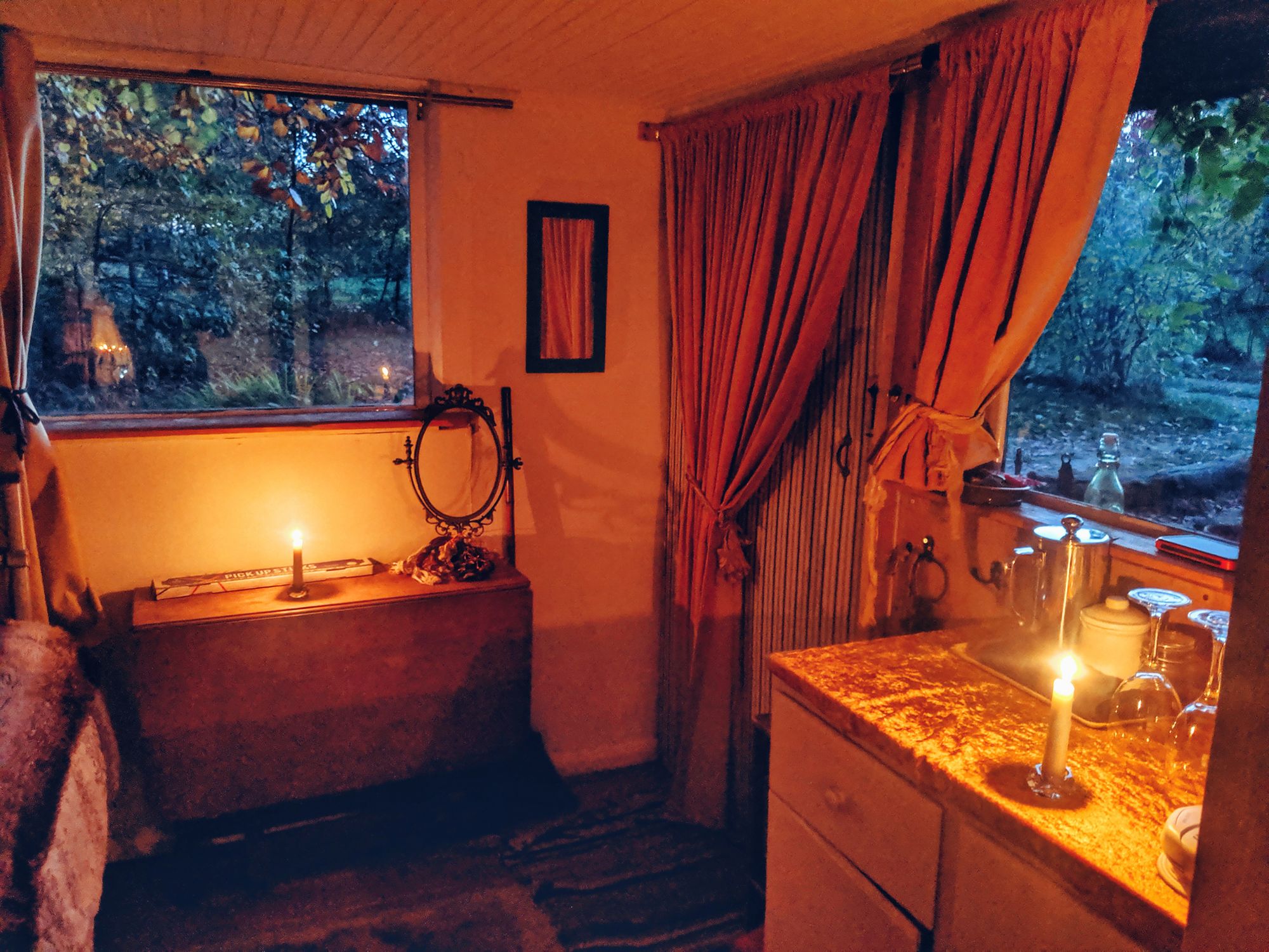 I’ll save you the suspense - we never made it to Pluckley. Instead, we have rented a truly special airbnb cabin in the woods, 15 minutes away from Pluckley - kidding ourselves about embarking on the ghost hunt later on after dark. Instead, of course & as per usual, we got busy with drinking, reflecting, crying in each other’s arms, discussing everything there is to discuss about life and penises.